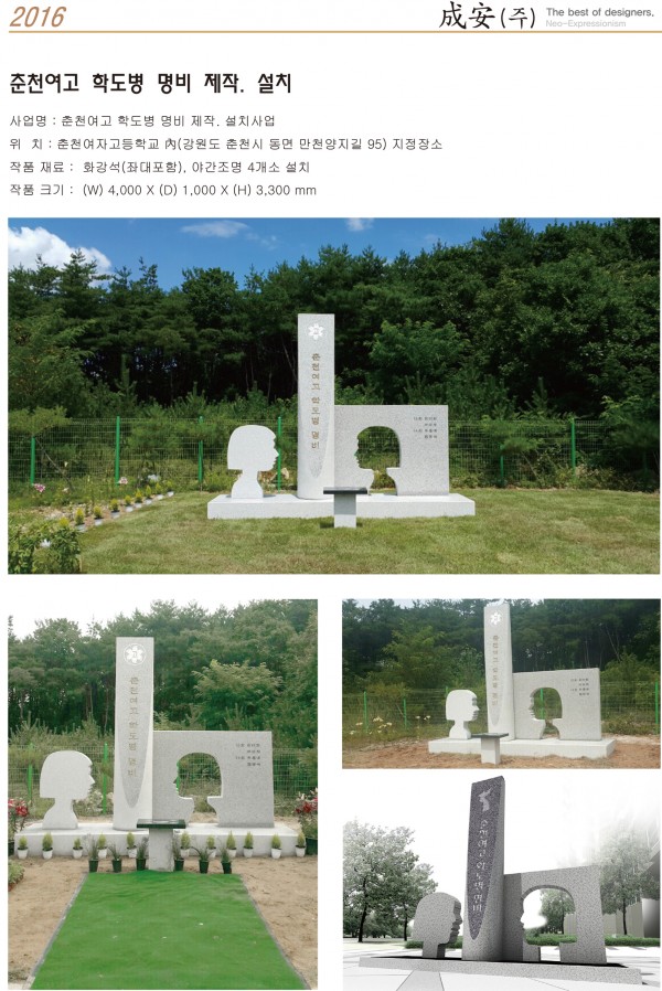 춘천여고 학도병 명비 제작설치 페이지 정보 작성자 관리자 댓글 0건 조회 617회 작성일 23-11-23 16:55 본문 춘천여고 학도병 명비 제작설치 목록 목록 이전글양구 근현대사박물관 전시물 제작설치 기본 및 실시설계용역 23.11.23 다음글경북 산림 과학박물관 전시물 보완 23.11.23