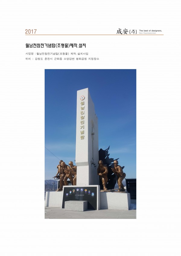 월남전 참전기념탑(조형물) 제작,설치 페이지 정보 작성자 관리자 댓글 0건 조회 609회 작성일 23-11-23 17:00 본문 월남전 참전기념탑(조형물) 제작,설치 목록 목록 이전글목재문화체험장 조성사업 관급자재(전시연출) 제작 23.11.23 다음글가평초등학교 6.25참전 호국 영웅 명비 제작, 설치 23.11.23